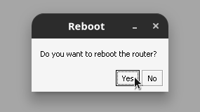 Para reiniciar (desligar e ligar) o roteador, vá em System > Reboot. Na janela de confirmação que pergunta Do you want to reboot the router? confirme clicando em Yes: