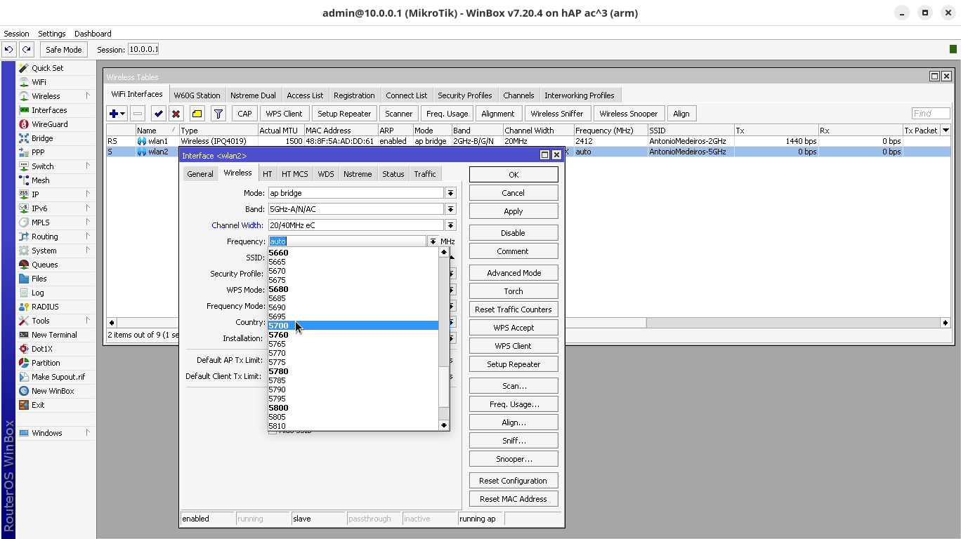 No WinBox, faça duplo-clique na segunda antena (wlan2) para configurá-la.